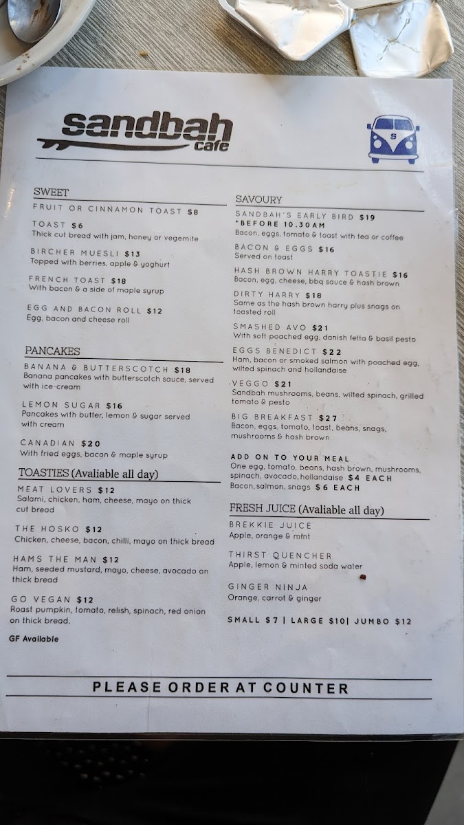 - Beverages: A range of coffee drinks such as ロングブラック (Long Black), カフェラテ (Cafe Latte), as well as smoothies like Banana Smoothie, complement the food offerings.